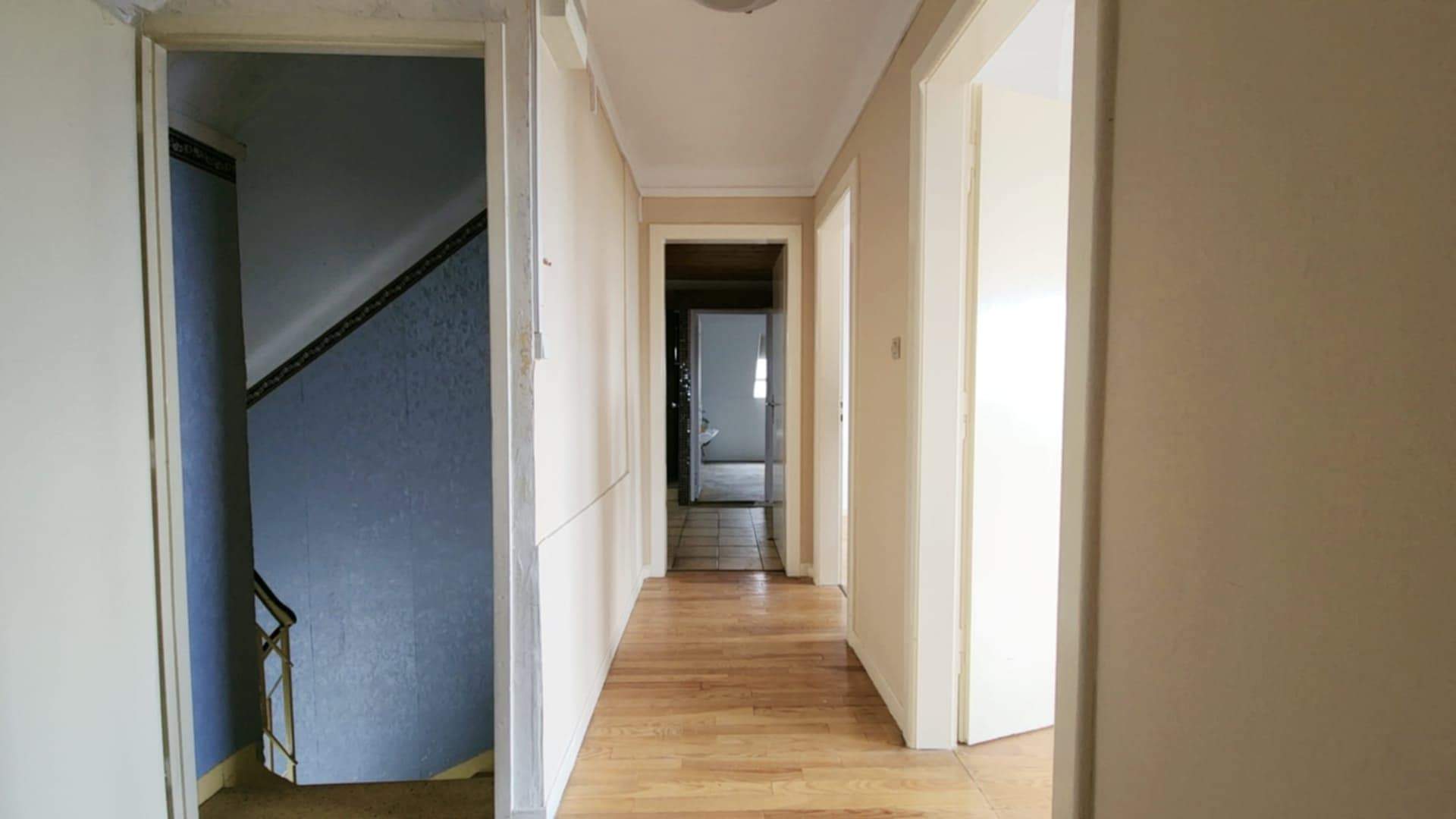 Au premier étage : un appartement familial aux belles proportions (112m²) Cet étage propose une pièce de vie agréable et spacieuse, cuisine fermée avec coin repas, ainsi qu’un grand couloir avec placard desservant les pièces nuit. On y trouve trois belles chambres de 12 à 19 m². La salle de douche est équipée d’un double lavabo, d’une douche et de toilette. Un appartement spacieux et confortable, parfait pour accueillir une famille.