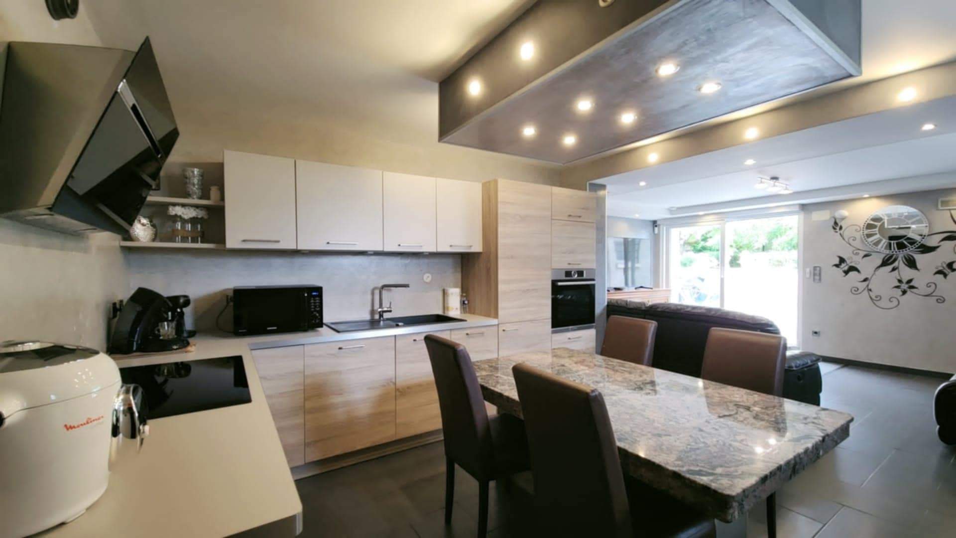 MAISON AVEC 3 APPARTEMENTS A BERTRANGE. Grande maison individuelle de 263m² habitable et de 392 m² total, avec 3 appartements, 2 avec terrasses, garage avec porte motorisée et 3 stationnements extérieurs. Située dans un environnement calme, cette maison individuelle spacieuse construit a 1958 (entièrement rénovée en 2014) offre un potentiel exceptionnel avec une surface totale de 392 m² répartie sur trois appartements indépendants. Idéale pour une grande famille, un projet de colocation, ou un investissement locatif, cette maison combine confort, volumes généreux et prestations solides.