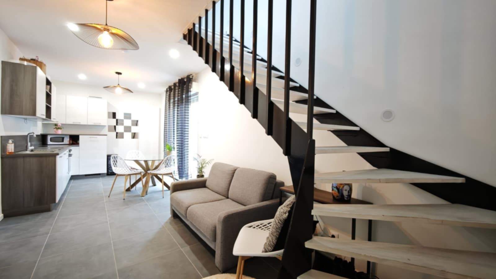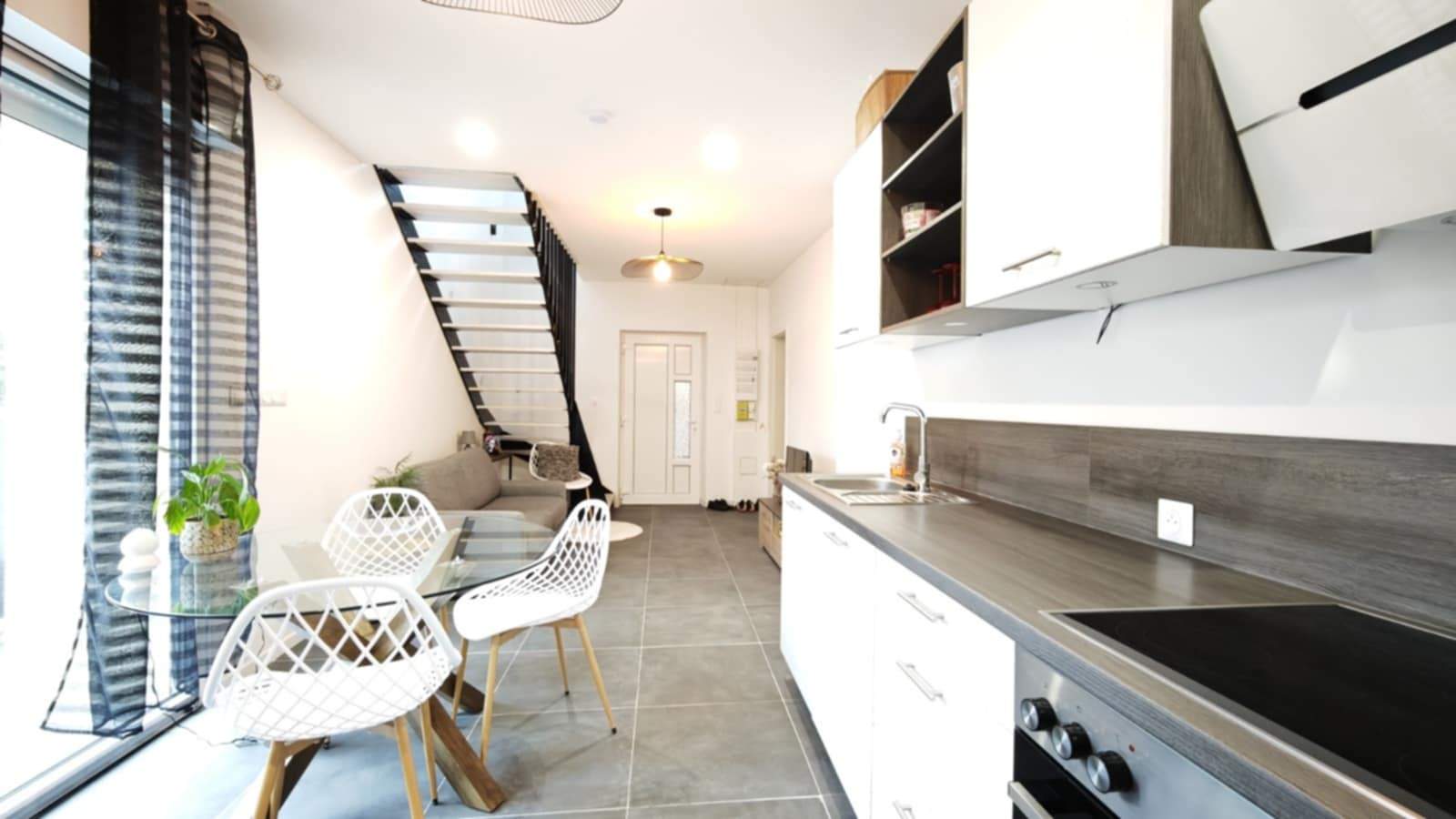 Angeli Immobilière vous propose à la vente Triplex 68 m² comme une maison avec jardin ou sans160m² ( terrain constructible pour éventuellement construire des garages. Voir avec la mairie ), avec entrée séparé, Cuisine entièrement équipée ouvert sur salon/ salle à manger 21,50m², toilette séparée, dégagement 10,88 m², 2 grand chambres 11,24m²et 12,80m² et 2 salles de douche avec lavabo et toilette 3,48m² et 3,048m², belle terrasse, cave, 17,17 m² débarras 5,8m² à vendre à Volmerange Les Mines